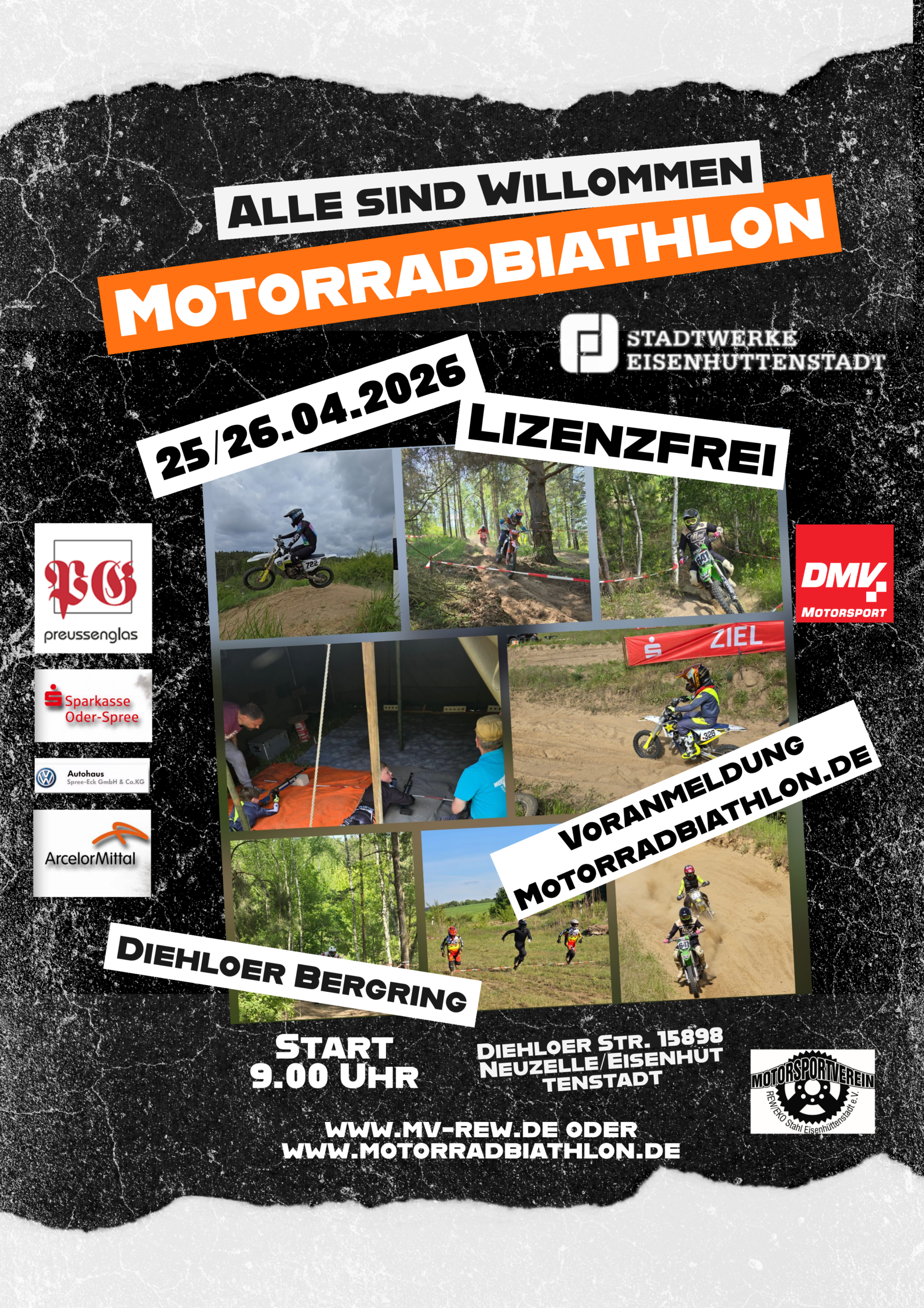 Am 25/26.04.2026 findet dann unser jährliches Motorradbiathlon statt eine Teilnahme ist für alle möglich und Lizenzfrei. Ihr könnt euch unverbindlich auf Motorradbiathlon.de anmelden. Die Anmeldung ist nur zur besseren Planung gedacht und nicht bindend.